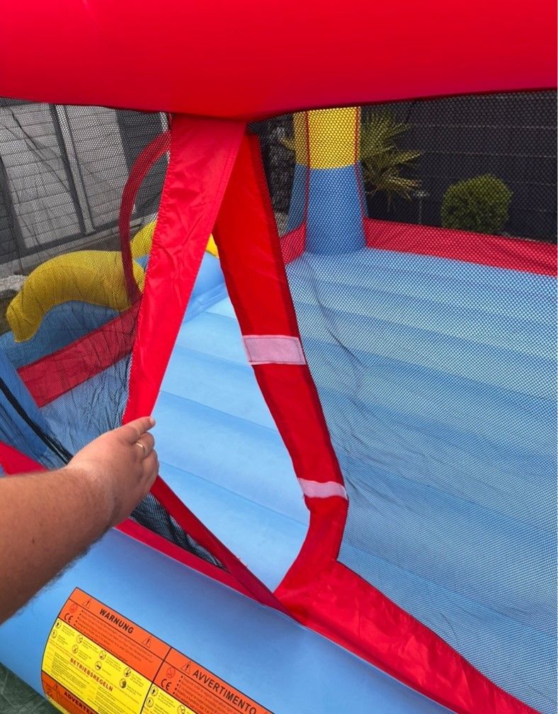 - Перед позичанням необхідно пред'явити дійсне посвідчення особи з фотографією. Ви отримаєте інструкції по збору. Надувний замок протестований відповідно до стандартів CE та EN71 (європейський стандарт безпеки іграшок). Повітродувка перевірена TÜV і GS. Наші надувні замки не підходять для дітей віком до 3 років. Використання можливе лише під безпосереднім наглядом дорослих.